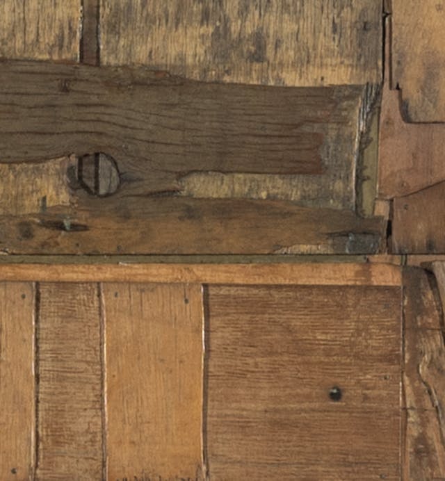 In fact, the reconciliation of a rigorous project and an eroded materiality allows this painting to embody in its construction a certain perfume of things (memory or function). It brings us closer to them, either by the unusual elements at play (wooden plates, screws, dyed papers, screens, objects), or by the visual arrangement of its configuration (shapes, iconography, colors). A corpus that is singular for erecting a paradoxical imagery of geometric elements by means of used and discarded materials, providing an oblique porosity between painting and world. It is an unusual collage that offers itself as a window, stage, or even architectural facade in the memory of time and the world (the link of life, space, representation).