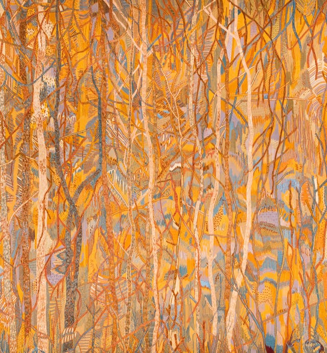 This experience, situated between natural forest and crafted embroidery, the artificial and the natural, the physical material and intangible symbol is the result of a unique visual language Jospin has refined over the years. Her work has been featured in some of the world’s most prominent institutions: including the Palais de Tokyo, the Musée du Louvre, Villa Medici, Palazzo Fortuny in Venice, and the Orangerie at Versailles. Her art doesn’t command attention through scale, rather it draws intensity from the silence of contemplation.