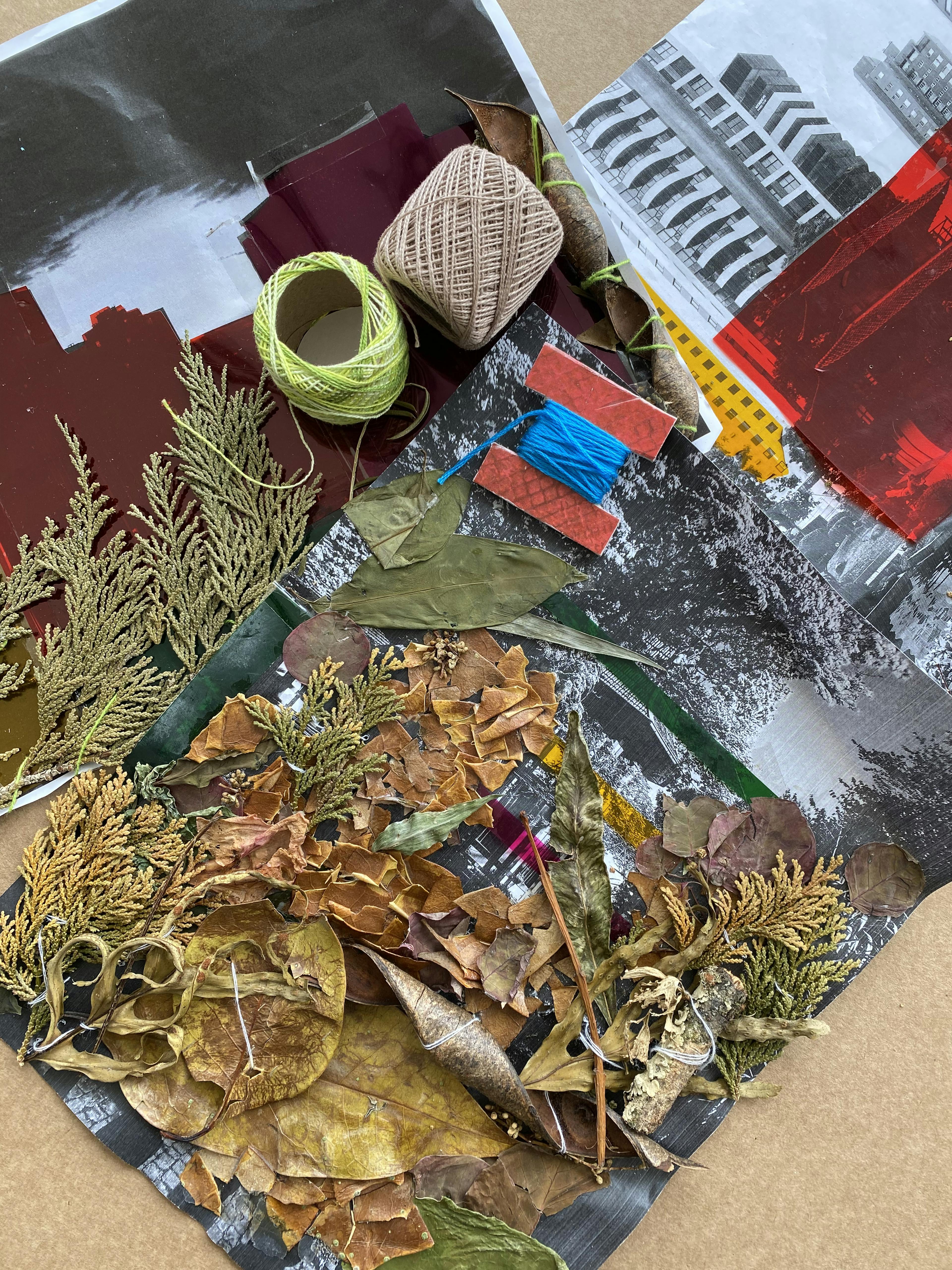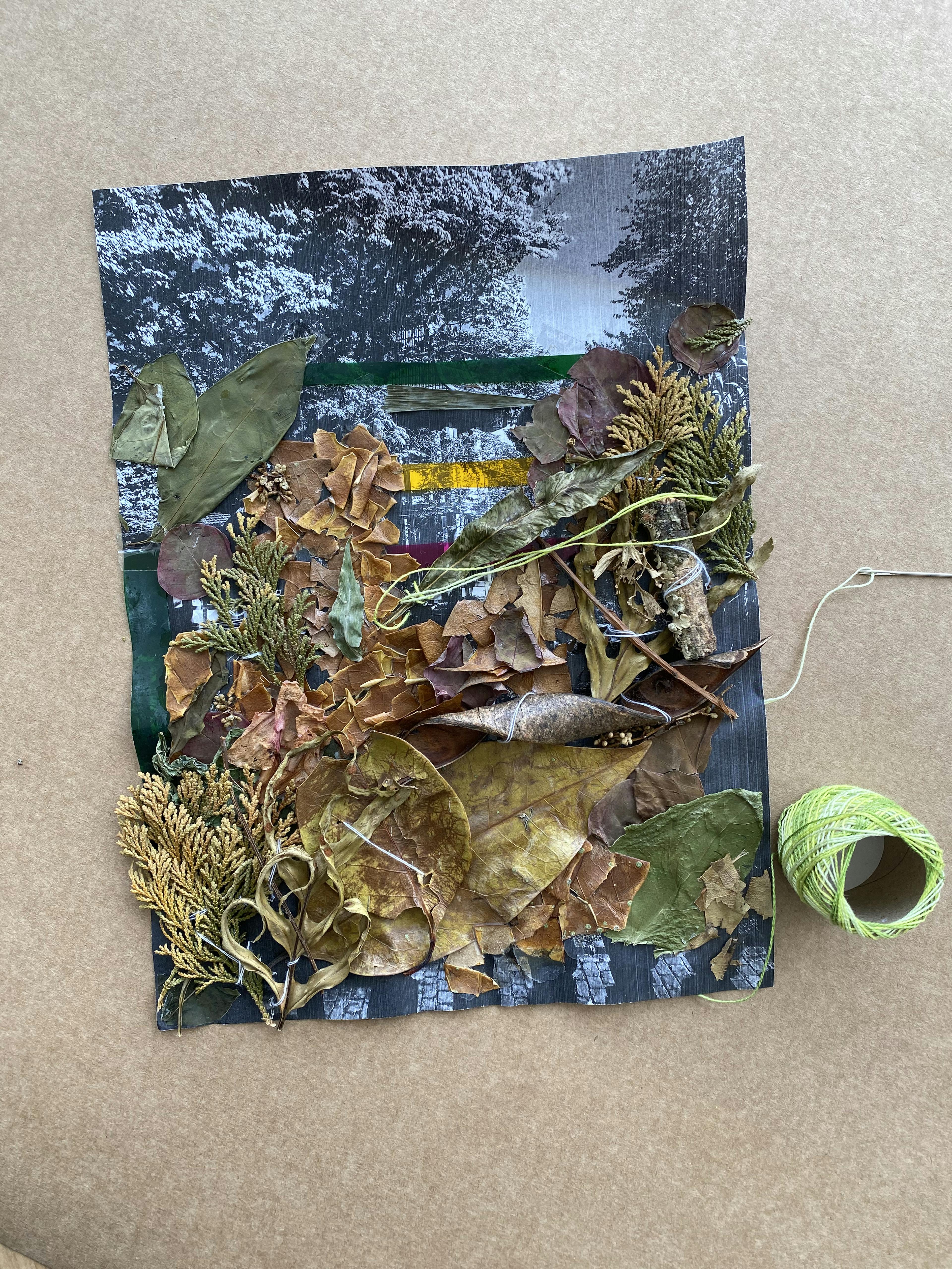 Oficina de colagem e costura: natureza em camadas
